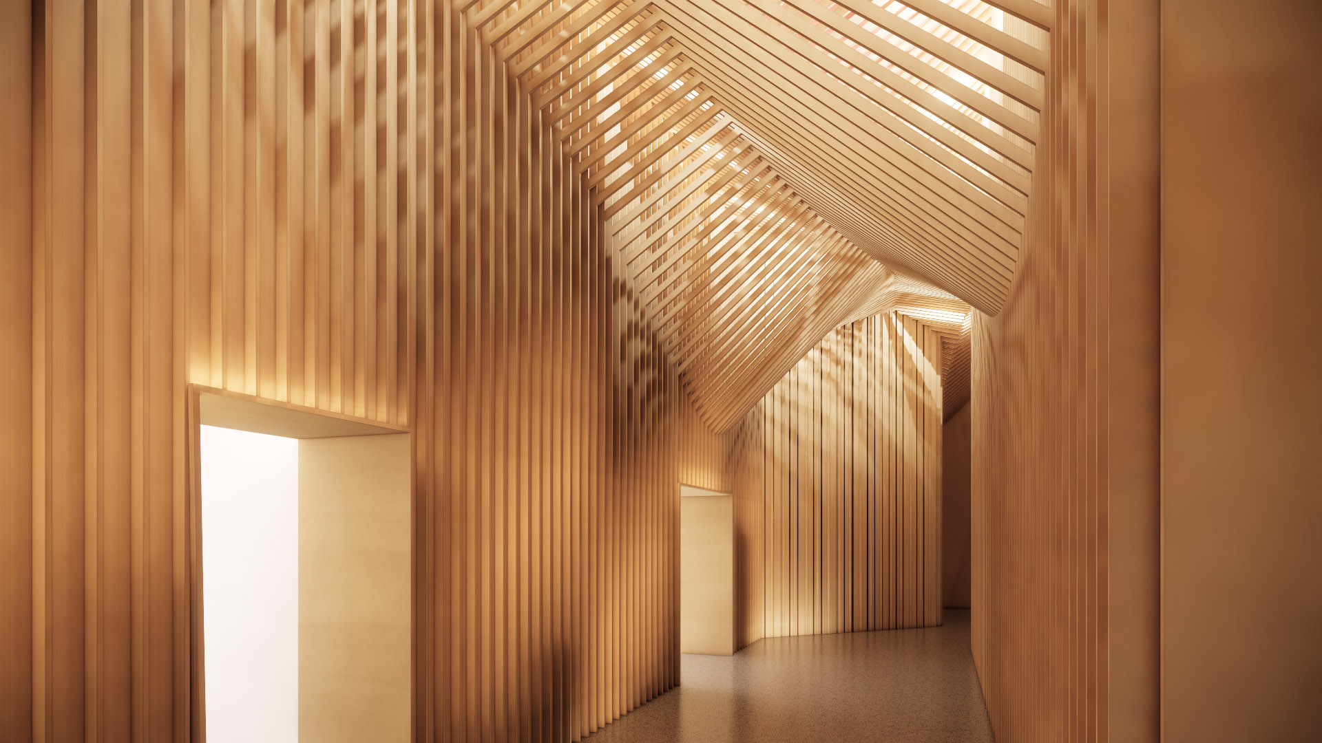 为了容纳三座原尺寸的复原石窟,我们把空间压榨到了极致,但还是尽量留出一个前厅作为缓冲,既是参观人流也是对室内外气候
